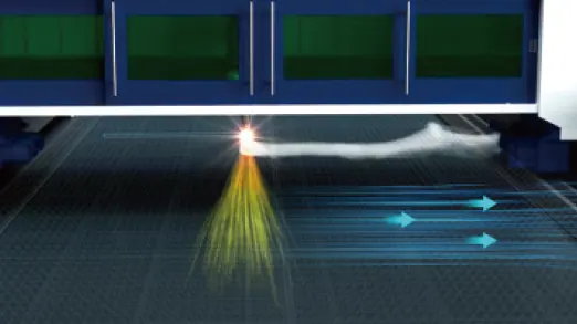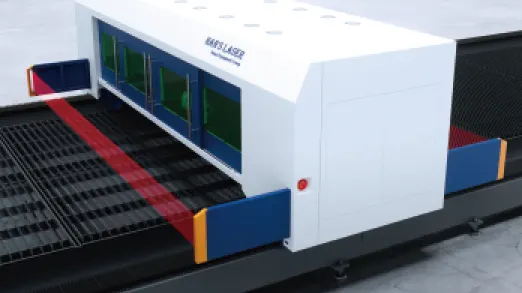 Полностью закрытая система защиты от лазерного излучения (защитное стекло OD5+), защитные световые завесы, система аварийного торможения и интеллектуальный модуль диагностики неисправностей обеспечивают безопасность от лазерного излучения и надежность производства.