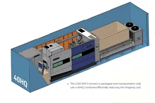 Электрический шкаф ⁄ лазерный источник ⁄ пневматическая система ⁄ система смазки ⁄ моторы привода стола — все интегрировано в основную раму, что обеспечивает гибкость в размещении, простоту установки и обслуживания, эффективно повышает коэффициент использования производственного пространства и снижает занимаемую площадь машины, экономя затраты на доставку.